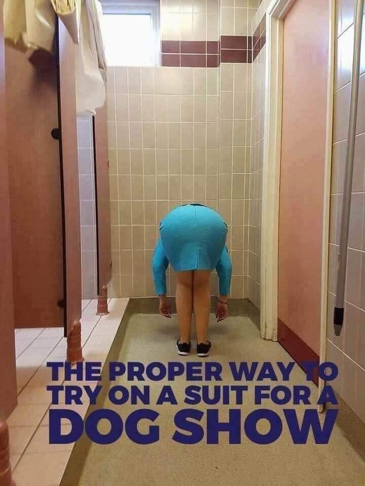 TIP jak zkoušet sukně/šaty zda jsou vhodné na psí výstavu. Hluboký předklon!
